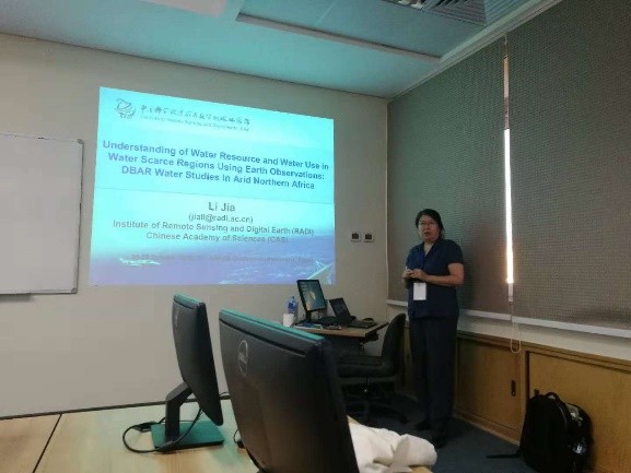 贾立作了题为“Understanding of Water Resource and Water Use in Water Scarce Regions Using Earth Observations: DBAR Water Studies In Arid Northern Africa”的主题报告,系统介绍了“数字丝路”国际科学计划(DBAR)及DBAR水资源工作组的总体目标、研究内容和进展,以及在非洲水资源研究能力建设方面的工作等。郑超磊介绍了基于多源遥感数据的非洲萨赫勒地区水量平衡研究,该研究是国家自然基金委(NSFC)和联合国环境署(UNEP)合作框架下资助的国际合作项目“萨赫勒土地利用和土地覆盖变化的驱动机制:影响和响应”的重要研究内容和成果,对萨赫勒地区水土资源合理利用与保护及推动“绿色长城倡议”具有重要意义。