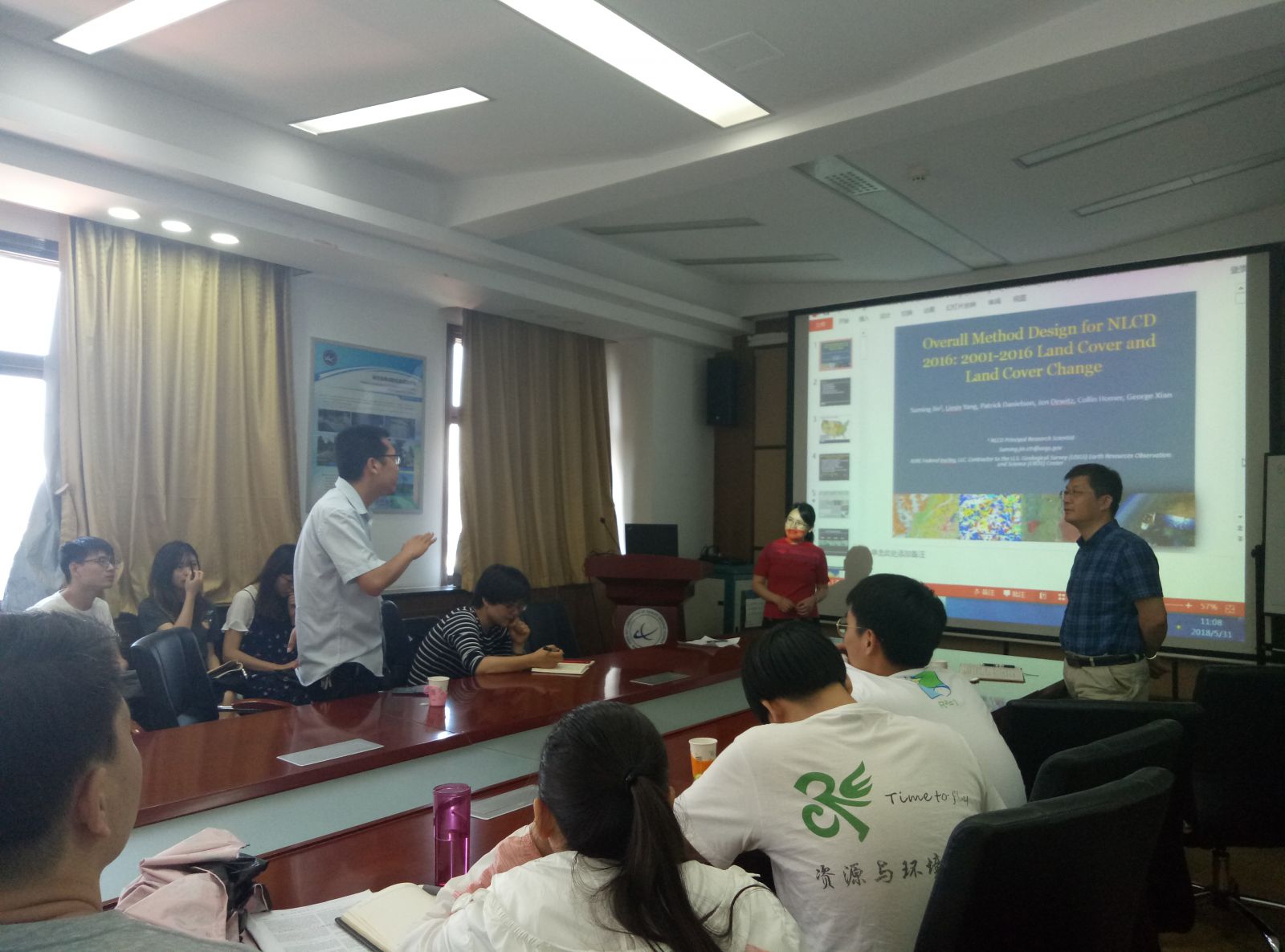 2018年05月31日上午,应柏延臣教授邀请,美国地质调查局地球资源观测和科学中心(USGS EROS)的金素明博士来实验室开展学术交流,并作题为“Overall Method Design for NLCD 2016: 2001-2016 Land Cover and Land Cover Change”的学术报告。