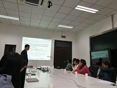 潘小乐研究员主要介绍了其在大气气溶胶颗粒物混合演变及干沉降过程和沙尘气溶胶表面化学的观测与模拟研究方面的一系列工作成果及最新进展。潘小乐在报告中介绍了其在北京一次沙尘暴天气的观测研究结果,引起了大家的关注和讨论。同时潘小乐研究员还介绍了自行研制的污染物颗粒的观测装置,为气溶胶遥感反演的验证提供了途径。