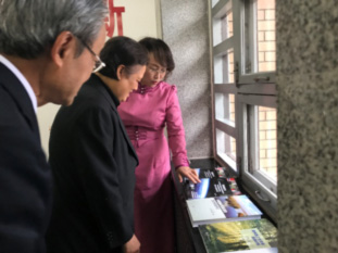 曹春香研究员向公主汇报了泰国留学生在遥感所的学习情况,并以宣传册和专著的形式介绍了泰国学生留学生活和环境健康研究室的学术成果。泰国公主亲切地与曹春香研究员交流了她对森林遥感和农业遥感应用的体会,表达了对曹春香研究员团队学术成果的兴趣。