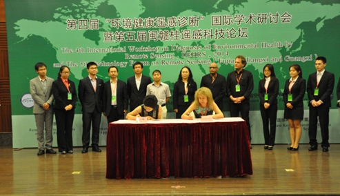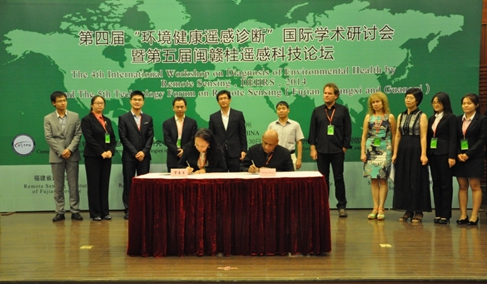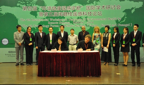 大会取得了丰硕的成果。40余名专家、学者以及研究生获得了本届大会颁发的特别贡献奖、优秀学术成果奖等4个奖项 。在本届大会上,公共卫生领域空间信息技术应用研究中心与美国波士顿大学的Ranga B. Myneni教授、美国查普曼大学的Ramesh P. Singh教授、意大利埃德蒙马赫基金会Loris Vescovo 研究员;福建省空间信息工程研究中心与香港中文大学黄波教授以及保加利亚地理所的Rumiana Vatseva博士成功签订了五份“环境健康遥感诊断”国际研究团队合作协议。面向环境健康遥感诊断研究的国际合作研究团队,经过历届国际学术研讨会的努力,取得了可喜的成绩,形成了有序地打造世界一流环境健康遥感诊断专业队伍的模式。