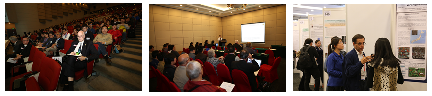 郭华东院士(遥感与数字地球研究所所长)、George Komar主任(美国宇航局地球科学技术办公室)、Phil Stahl博士(SPIE主席)、施建成研究员(遥感与数字地球研究所)、Upendra Singh教授(美国宇航局Langley研究中心)、Hiroshi Murakami博士(日本地球观测研究中心)出席开幕式。来自全球29个国家和地区的400余名专家学者围绕“地球系统科学遥感与环境健康监测”这一主题,分为6个分会场,以251个口头报告和226个展板开展了深入的学术交流,内容涉及大气、云及降雨遥感,陆地遥感,海洋遥感,激光雷达遥感环境监测,多光谱、高光谱及超光谱遥感技术及应用,对地观测卫星及传感器研发进展,以及海气遥感及建模等。此外,还有包括大学、研究所、及遥感相关的科技公司在内的共24个展位。在10月15日的颁奖晚宴上,大会表彰了施建成研究员等28位专家对会议的杰出及持续贡献,分别授予了会议指导委员会、国际及本地组委会、会议日程委员会、及大会分会主席的荣誉称号。