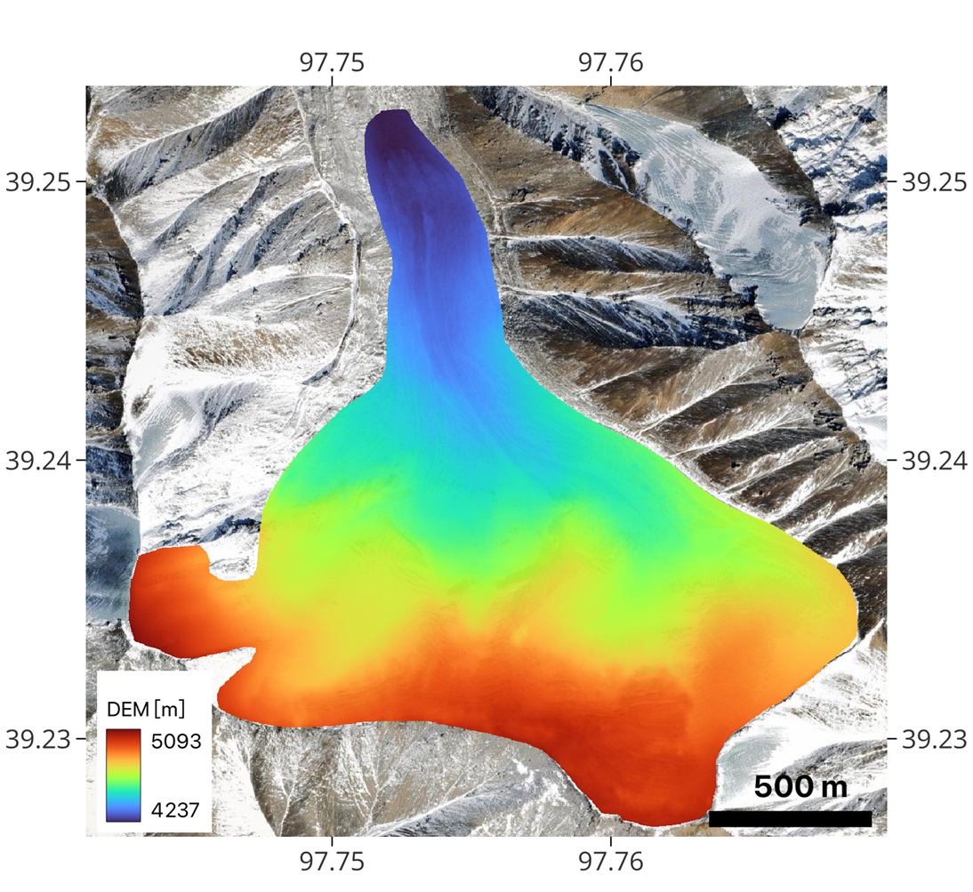 本次调查自2024年9月至11月,共有效飞行13架次,采集原始数据5.6TB,取得了冰川表面数字高程模型、冰川底部基岩数字高程模型、冰川剖面图、冰川储量、冰川三维透视图及3个典型冰川储量等成果,并结合探地雷达测量数据完成了冰川厚度准确度评价。