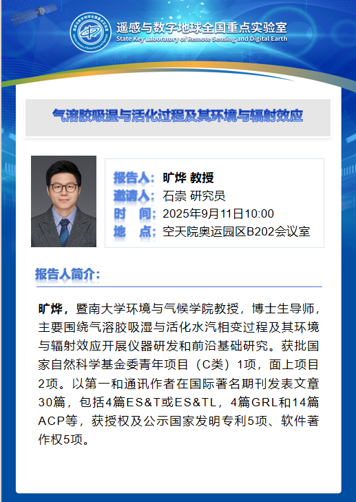 旷烨 教授:气溶胶吸湿与活化过程及其环境与辐射效应