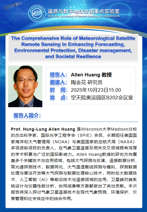 Allen Huang 教授:The Comprehensive Role of Meteorological Satellite Remote Sensing in Enhancing Forecasting,Environmental Protection, Disaster management,and Societal Resilience