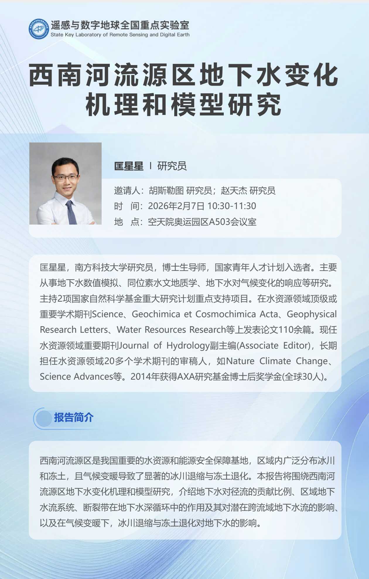 匡星星研究员:西南河流源区地下水变化机理和模型研究