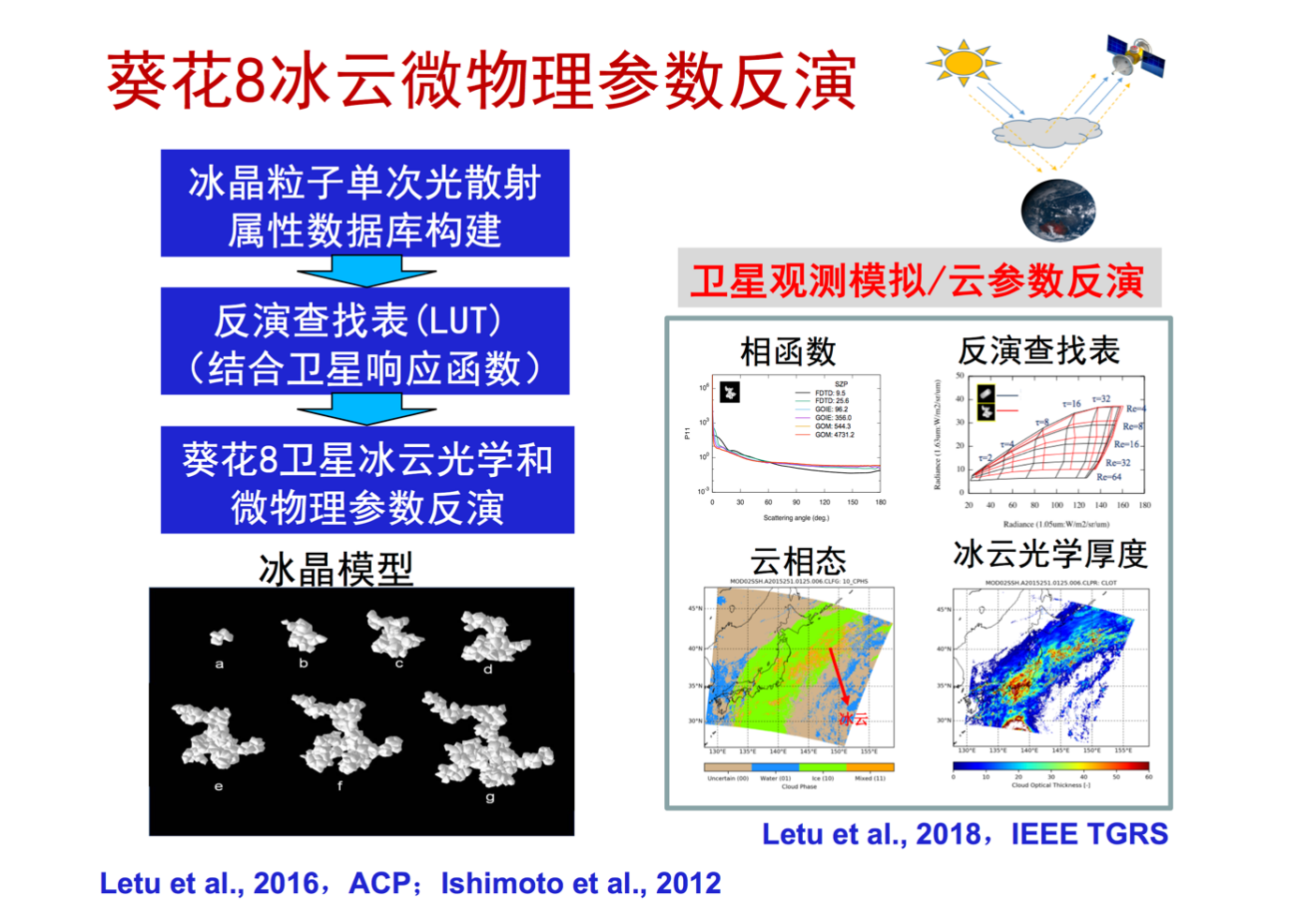 2) Letu, H. et al, 2016: Investigation of ice particle habits to be used for ice cloud remote sensing for the GCOM-C satellite mission. Atmos. Chem. Phys, 16(18), 12287-12303. doi:10.5194/acp-16-12287-2016