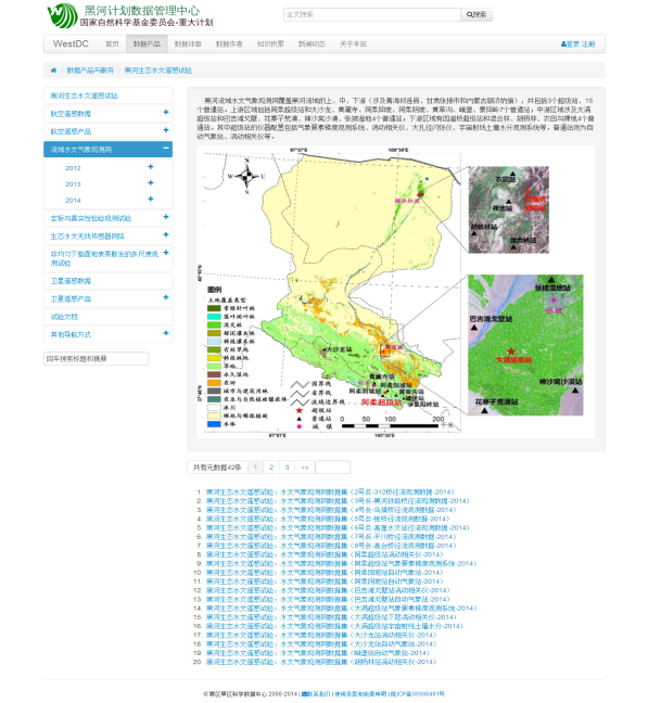 “黑河计划数据管理中心”网站上数据发布页面