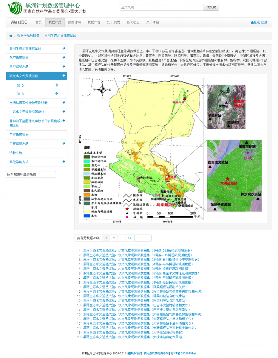 “黑河计划数据管理中心”网站上数据发布页面