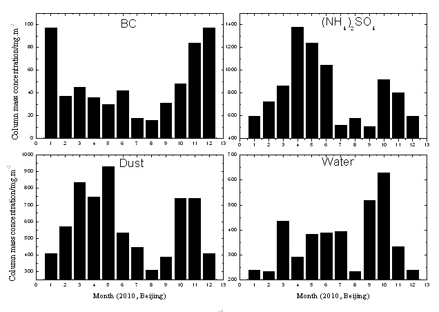 (b)通过地基遥感观测首次获得北京月平均气溶胶化学组分含量变化信息