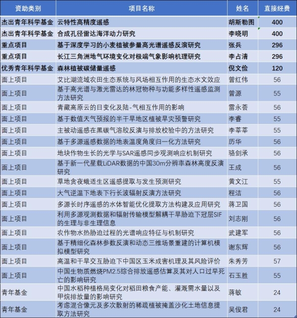 遥感科学国家重点实验室2020年自然科学基金获资助情况