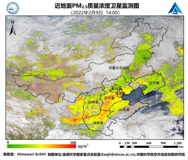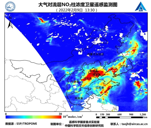 北京冬奥会开幕以来,“北京蓝”成为冬奥会靓丽底色,除了有利的天气因素,还得益于赛事期间生态环境部会同冬奥会赛场区域的北京、河北,以及污染物传输通道的天津、山西、山东、河南、内蒙和辽宁等8省(区、市)统筹的科学、精准的联防联控。遥感科学国家重点实验室陈良富研究员带领大气环境遥感团队,利用团队空气质量遥感监测技术优势和前期成果积累,积极参与了北京冬奥会期间空气质量保障工作。