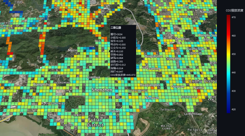 据技术负责人张永霖介绍,研究团队协助深圳市完成走航观测650公里,获得街景影像和道路交通碳排放记录10万多条,构建出了全市道路交通碳排放强度推演模型。目前,通过对这些海量数据的学习和分析,这套AI算法模型对于道路交通碳排放强度推算的准确度已经达到90%以上。利用该研究手段,生成了深圳全市的精细化道路交通碳排放地图,进一步识别了道路交通碳排放高强度聚集区和驱动因素。未来还将为这套算法模型接入自动驾驶、导航地图街景等实时影像数据,进一步提升泛化性能。