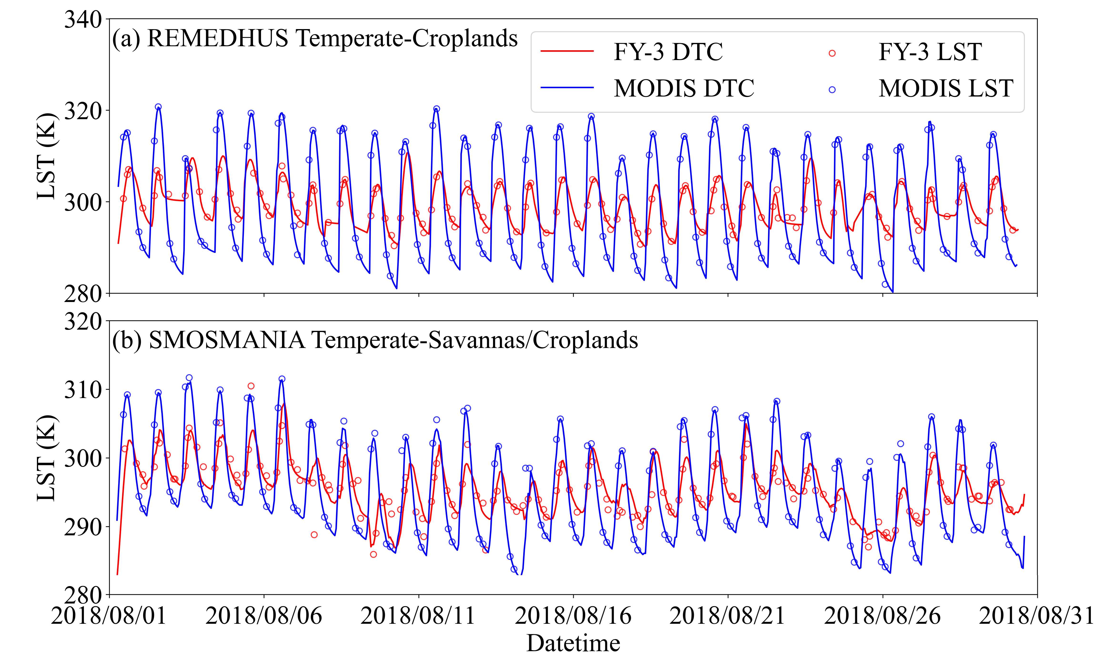 近日,中国科学院空天信息创新研究院(空天院)联合河海大学、国家卫星气象中心等单位提出一种多类微波指数协同校正复杂地表条件影响(如冻融交替、积雪和植被覆盖等)的地表温度遥感方法,利用我国风云三号系列卫星的组网观测能力,从日内变化的维度揭示了微波地表温度相对于热红外地表温度的温差缩小和峰值滞后特征,可有效反映陆气间能量交换的土壤热惯量属性。