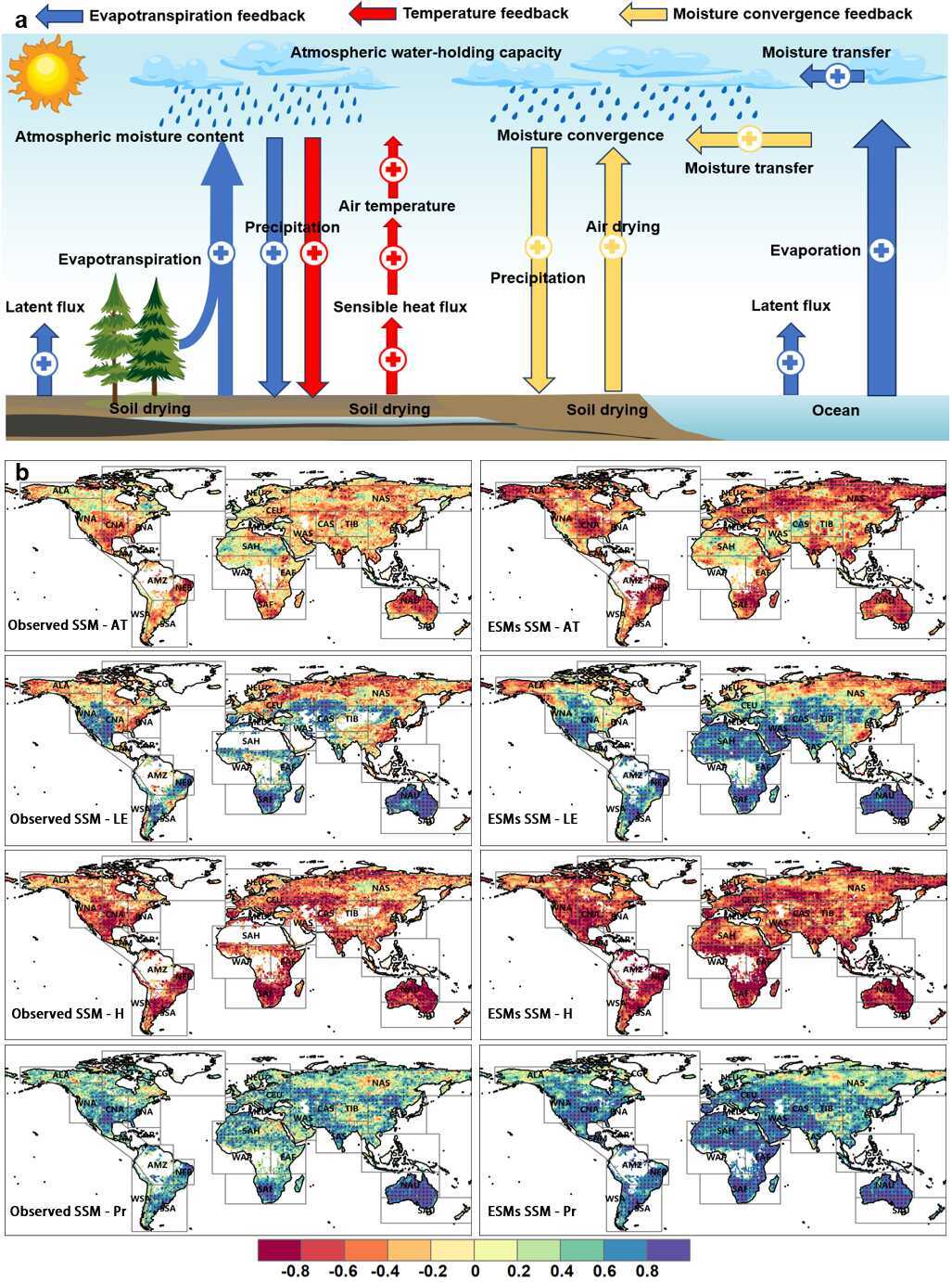 土壤湿度是联系大气、水文与生态过程的关键变量,直接影响农业生产、干旱监测、热浪和野火风险研判,以及陆气相互作用过程的刻画。随着全球变暖加剧,表层土壤湿度如何演变、未来是否持续干化,已成为全球变化研究中的前沿科学问题。然而,受遥感观测空缺和地球系统模式对陆气反馈过程表征不足等因素影响,当前对全球土壤湿度长期变化及未来趋势仍存在较大争议。