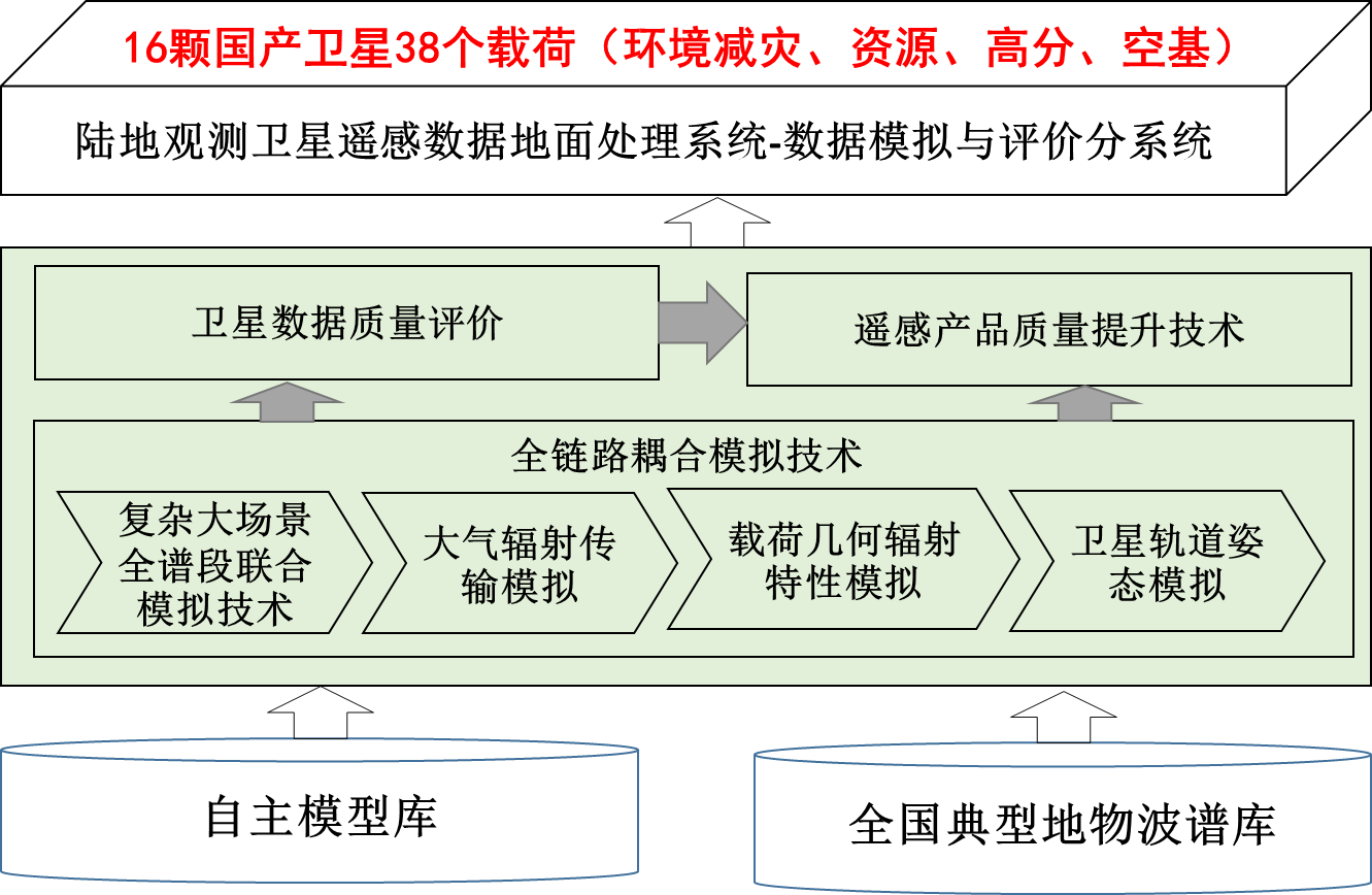 全链路遥感卫星图像模拟具备叠加不同传感器辐射特性的模拟能力和干扰误差仿真能力,模拟数据在卫星发射前对地面系统进行功能测试,性能测试,鲁棒性测试和压力测试,支撑了环境减灾卫星、中巴资源系列卫星、资源三号卫星、高分系列光学卫星等16颗国产卫星38个载荷的地面系统建设系统。在高分五号01星发射前及时检查出全谱段相机第11波段和第12波段的辐射特性异常,及时排除了一次重大的技术隐患。