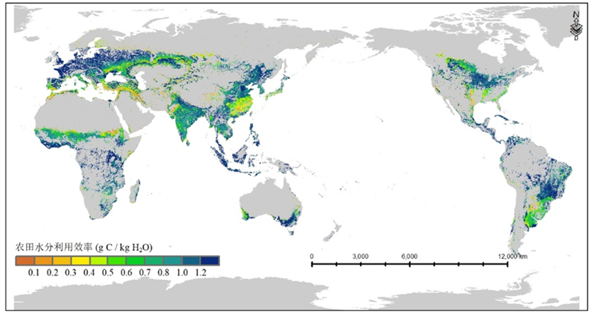 农田水分利用效率与人类福祉和可持续发展目标等息息相关,在水资源总量有限而用水需求不断增长的情况下,提高水分利用效率,减小单位生产力所需的耗水量,是解决水资源短缺问题的重要途径之一。 本数据产品定义的农田水分利用效率表达为农田净初级生产力与蒸散发量之间的比值(单位:克碳/千克水/年),表征了作物光合作用碳同化与水消耗之间的权衡关系,反映农田生态系统服务能力。农田蒸散发量来自本数据产品集中的“全球陆表蒸散发产品”,该数据产品由多源遥感数据等驱动的ETMonitor模型估算;农田净初级生产力等于作物总初级生产力减去作物维持自身呼吸所消耗的被固定的有机碳部分,其中,总初级生产力由考虑了土壤水分胁迫后改进的光能利用率模型EF-LUE估算,作物维持自身呼吸所消耗的被固定的有机碳部分则由生长呼吸(与净初级生产力成正比)和维持呼吸(与叶面积指数等有关) 累加获得。