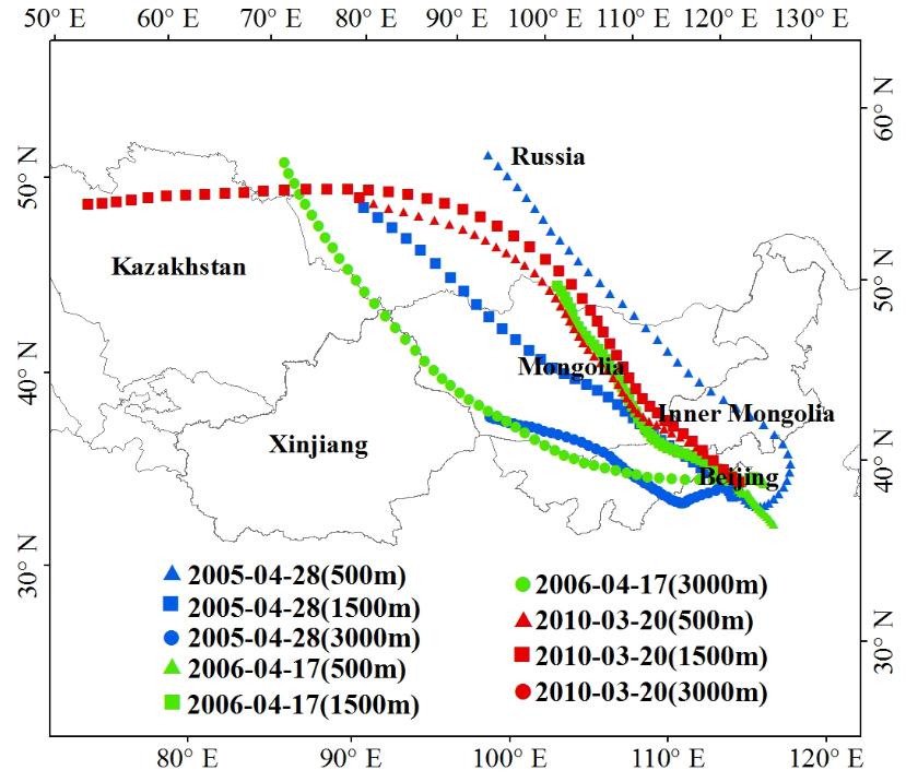 图 2 后向轨迹模型分析北京沙尘的来源