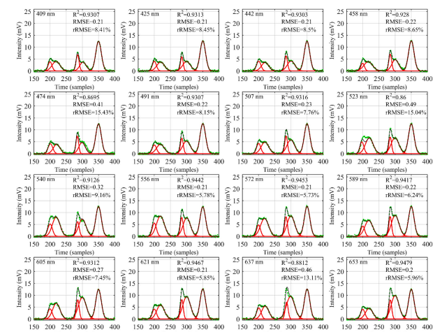 高光谱激光雷达回波信号处理是高光谱激光雷达系统(以下简称“HSL系统”)各类应用开展前的基础步骤,其处理得到的辐射信息精度将直接决定后续定量反演或聚类研究的误差大小。传统的波形处理技术主要是针对单波长激光雷达系统设计的。由于单一波长光谱范围的限制,单波长分解结果通常无法捕获沿激光路径的目标的光谱廓线,阻碍了目标反射特性全面和精准的刻画与反映。HSL系统回波具有光谱脉冲复杂、不同波长脉冲延迟异质性、波形信噪比不同等特征,多自然目标会使得回波复杂性大大增加,如何提出先进的回波波形处理算法准确反演如植被等自然目标辐射特征对HSL系统而言是一个巨大挑战。