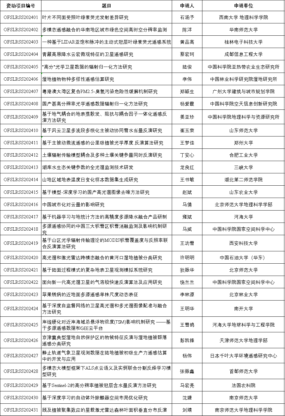 附表:遥感科学国家重点实验室2024度拟资助开放基金列表