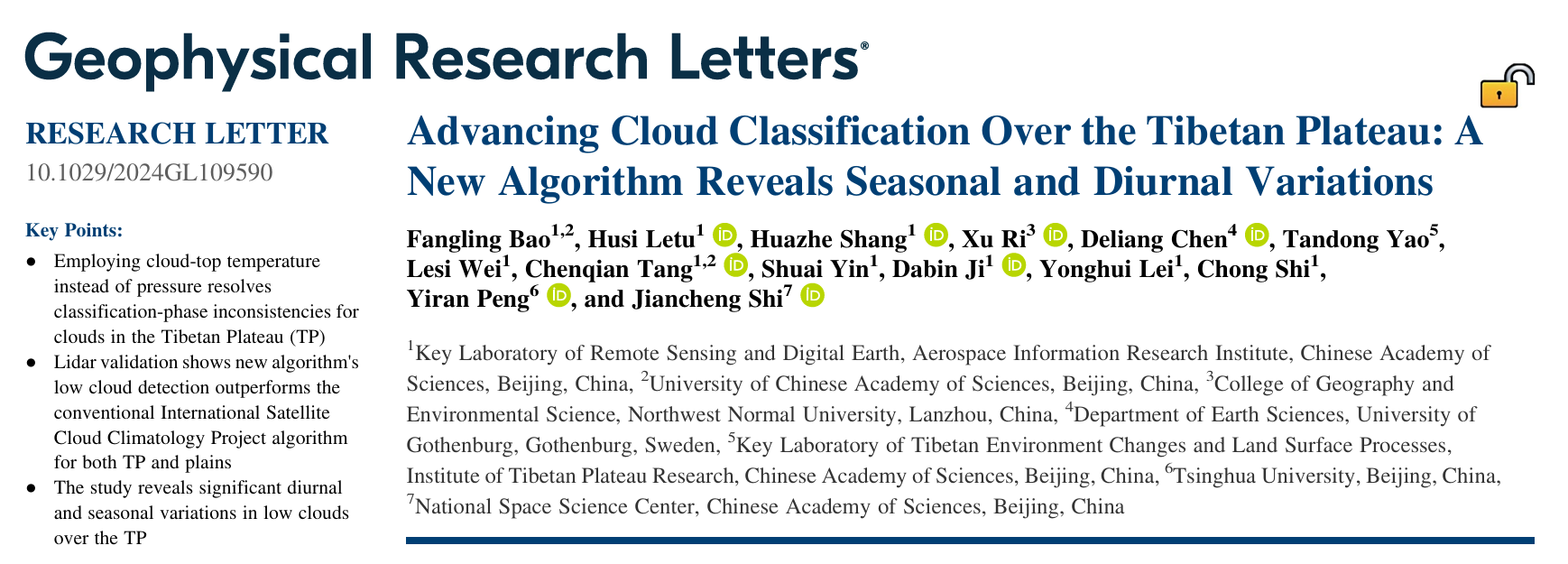 论文第一作者为空天院直博生包芳玲,胡斯勒图研究员为通讯作者,研究得到国家自然科学基金(42025504)和第二次青藏高原综合科学考察研究(2019QZKK0206)等项目资助。