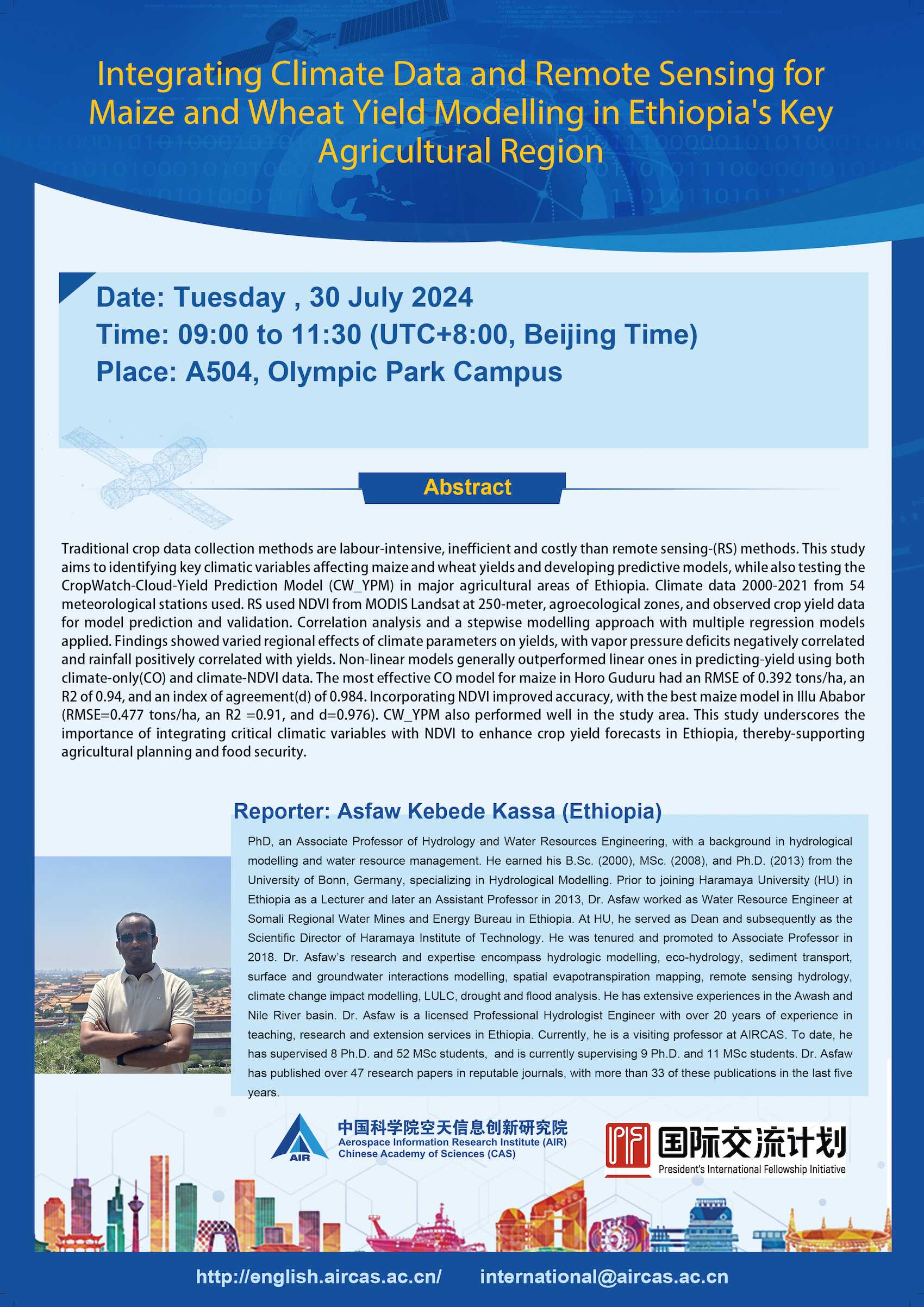 PIFI Seminar Integrating Climate Data and Remote Sensing for Maize and Wheat