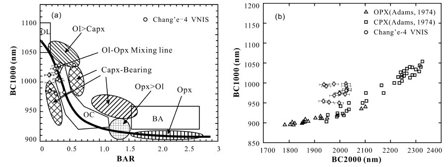 [3] Gou, S., Di, K., Yue, Z., Liu, Z., He, Z., Xu, R., Liu, B., Peng, M., Wan, W., Wang, Y., Liu, J., 2020. Forsteritic olivine and magnesium-rich orthopyroxene materials measured by Chang’e-4 rover. Icarus, 345, 113776.