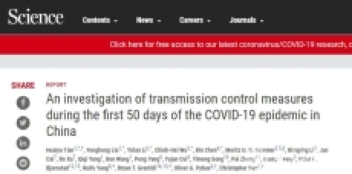 在遥感科学国家重点实验室专项的支持下,实验室田怀玉研究团队联合牛津大学、普林斯顿大学、军事医学科学院等中外15家团队合作,根据我国发布的新型冠状病毒肺炎(COVID-19)疫情数据(包括病例报告,人员流动和公共卫生干预措施)定量评估了流行病的传播和控制效果。报告全文中文提交国家决策部门获得领导同志批复。研究结果以北京师范大学、遥感科学国家重点实验室第一作者单位、通讯单位,以“新冠肺炎疫情暴发最初50天内中国传播控制措施的效果研究(An investigation of transmission control measures during the first 50 days of the COVID-19 epidemic in China)”为题,于2020年3月31日在《科学》(Science)上在线发表。