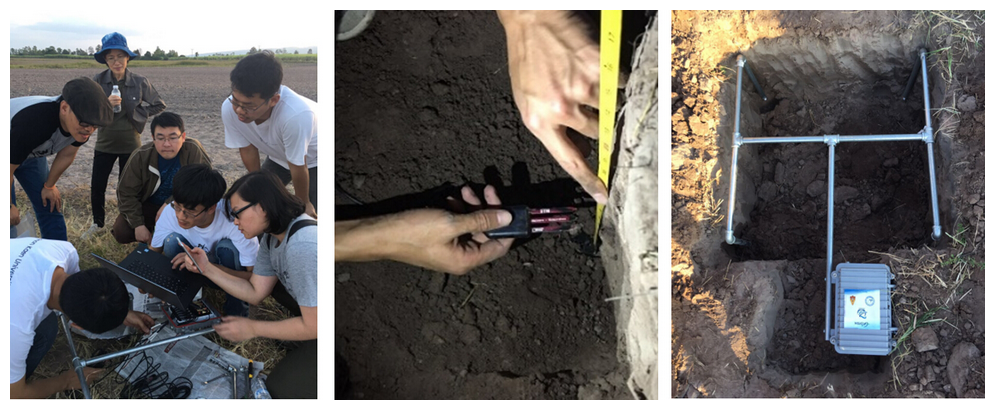 泰国东北部缺乏地面土壤水分观测资料,中泰双方考察了位于孟河流域(Mun River)的联合国教科文组织Sakaerat 环境研究站的通量观测塔,并与研究站的工作人员取得了接洽。中泰双方经过多次讨论,最终确定在泰国东北部的芝河流域(Chi River)的甘蔗地块以及孟河流域的木薯地块分别安装1台土壤温湿度传感器,用以持续获取土壤温湿度的测量数据。这将弥补东南亚地区土壤湿度的观测空白,为“遥感在泰国东北部水资源管理中的应用”微波遥感土壤湿度反演算法提供重要的地面验证。