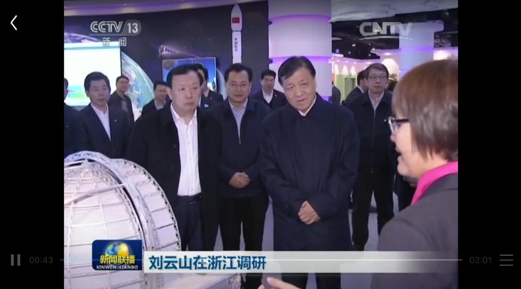 在半个小时的调研活动中,刘云山在遥感地球所实验室展台停留时间最长,并作为地理信息小镇展馆展台出现在《新闻联播》报道中。