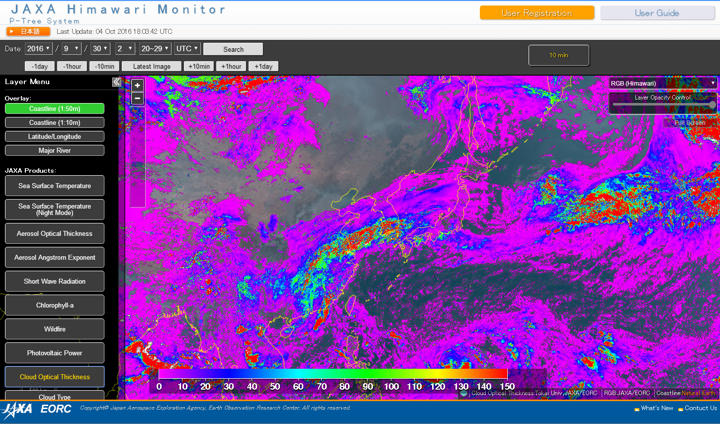 葵花-8(Himawari-8)卫星产品(云光学厚度)