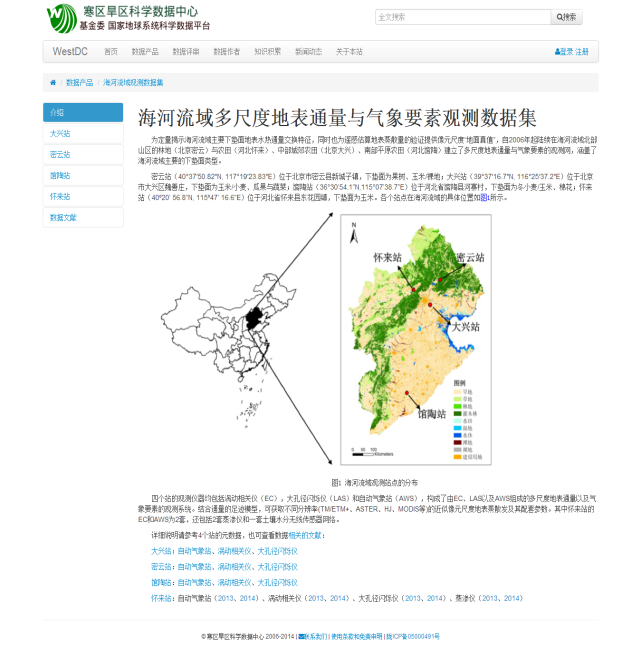 “黑河计划数据管理中心”网站上数据发布页面
