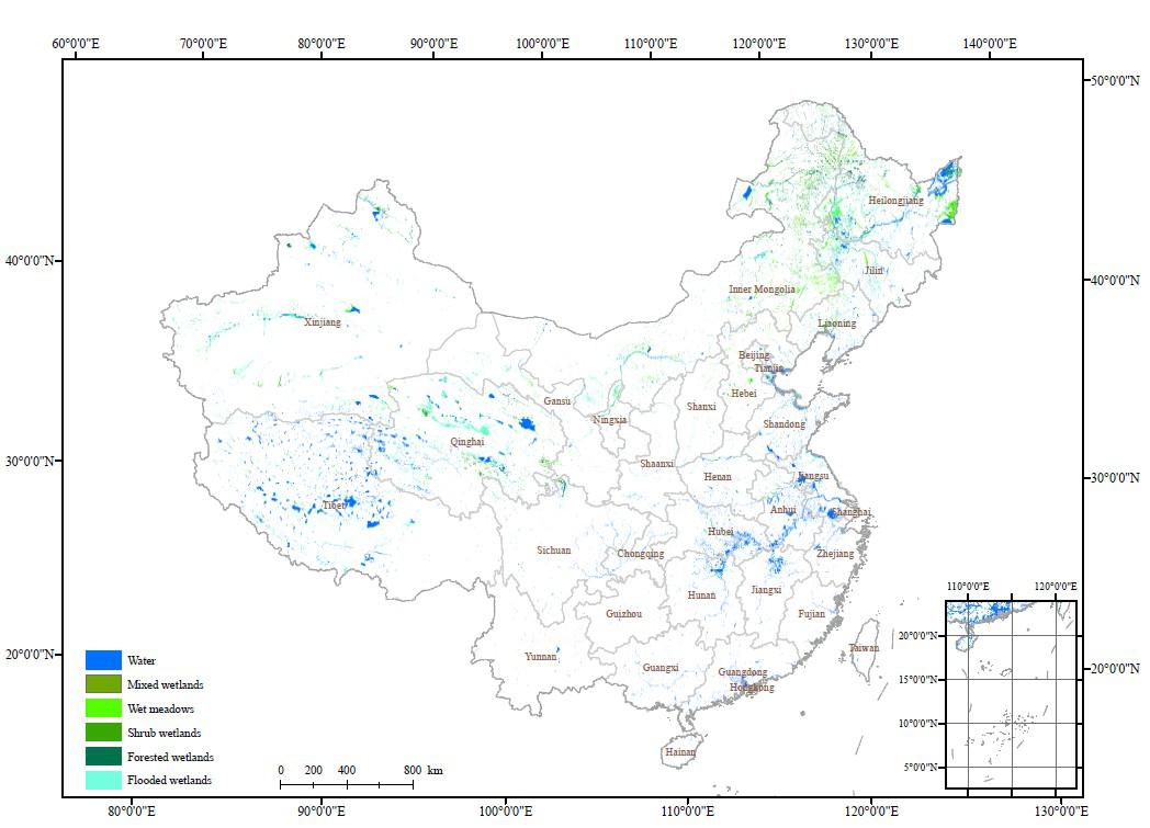 湿地遥感分类是大尺度地表覆盖遥感分类中的难点之一。目前,实验室湿地遥感研究团队在传统人工目视解译的基础上,对大尺度湿地遥感自动分类方法展开研究。以2010年中国全境Landsat TM 5为主要数据源,结合SRTM高程数据,综合运用多种分类方法,完成2010年中国湿地遥感分类(图)。同时从湿地水文角度入手,构建湿地潜在分布模型,基于多年降水、蒸发、地形以及湿地遥感制图数据模拟了的中国潜在湿地的分布范围。这些研究为进一步提高湿地分类精度、湿地管理和恢复等提供了理论方法和数据基础。