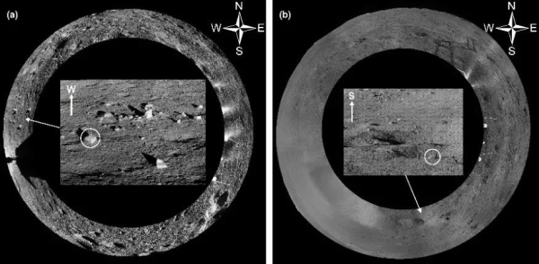 光谱对比结果显示(图 3),石块的光谱吸收特征与芬森撞击坑物质的光谱吸收特征较为接近,而与冯·卡门撞击坑内部玄武岩的光谱吸收特征差异较大。这说明了这些石块并非是本地玄武岩,而它们极有可能源自芬森撞击坑溅射物。