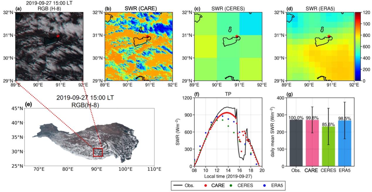 图4-青藏高原地表太阳辐射遥感监测结果优于同类产品